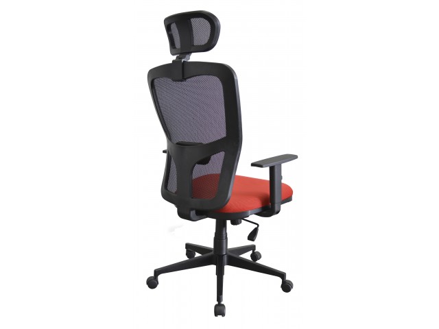 Componentes diferenciados:apoio de cabeça regulável em altura e inclinação, encosto em tela, que permite regulagem de altura e lombar.